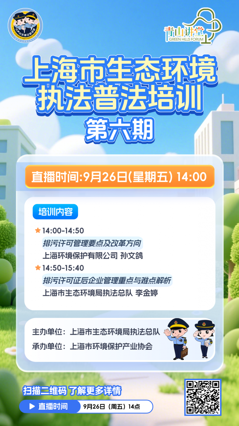 近期,上海市生态环境局制定并印发了《上海市全面实行排污许可制实施方案》。为全面发挥排污许可制度效能,健全以排污许可制为核心的固定污染源监管制度体系,压实企业主体责任,提升我市排污单位守法意识与环保管理水平,支撑深入打好污染防治攻坚战,助力美丽上海建设,由上海市生态环境局执法总队主办、上海市环境保护产业协会承办的2025年第六期生态环境执法普法培训即将开班。