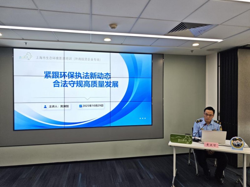 为进一步优化外商投资环境,更有针对性地服务外商投资企业遵守生态环境法律法规,提升绿色合规经营能力,促进经济高质量发展,2025年10月29日下午,在上海市生态环境局执法总队的指导下,市环境保护产业协会联合市外商投资协会,共同拉开首场外资企业生态环境专场普法培训序幕。近70家制药、化工、电子制造等企业的可持续发展负责人、EHS总监及环保负责人齐聚一堂,聆听三场精彩的普法讲座,现场学习氛围浓厚!市外商投资协会丁遂亮副秘书长主持本次培训。