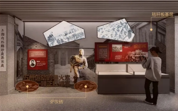 这是纪念馆破解行业“一次性搭建、展后即弃”难题的实践。展览摒弃难以降解的定制化木结构,大胆采用了农作物秸秆为原料的秸秆板、建筑垃圾再生而成的再生砖等环保材料,从源头减少资源消耗。既保障了展览的艺术效果与结构安全,更让“无废”理念通过触摸可及的展品深入人心。