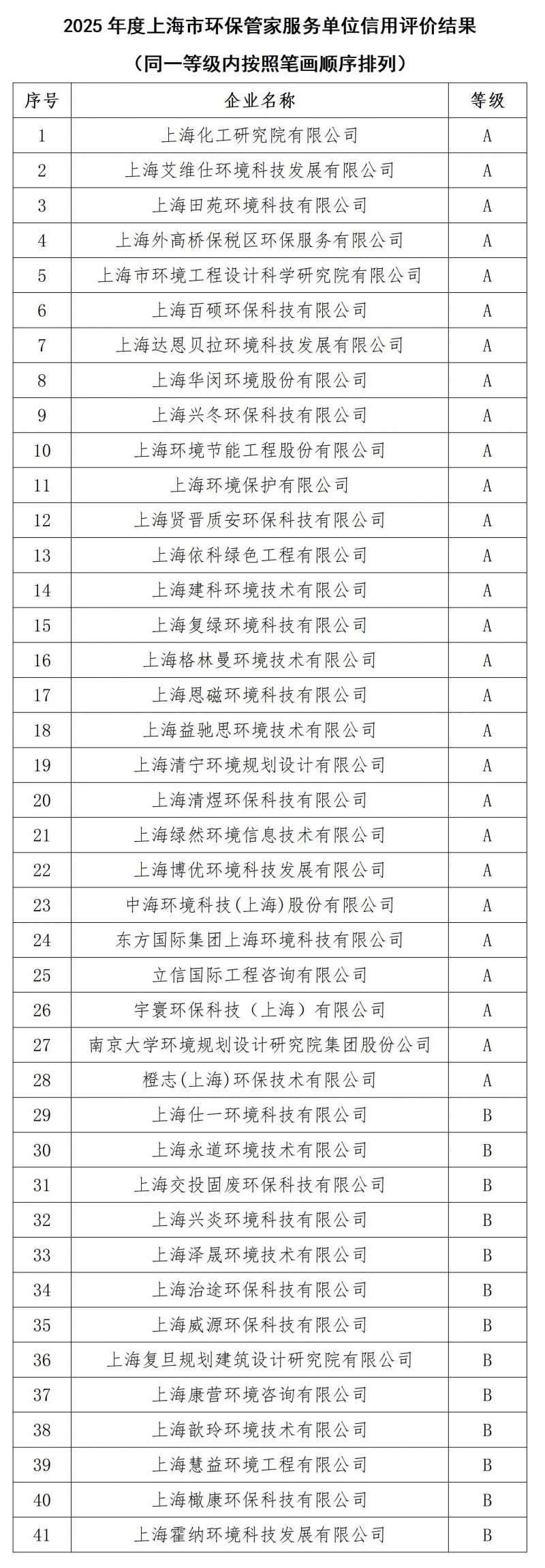 为强化本市环保管家服务单位信用体系建设,根据地方标准《第三方环保服务规范》(DB31/T1179-2019)、《上海市环保管家服务单位信用评价管理办法(试行)》(上环协综〔2025〕第033号),上海市环境保护产业协会组织开展2025年度环保管家服务单位信用评价工作。经初审、专家核查等评价程序,现已形成2025年度上海市环保管家服务单位信用评价结果。