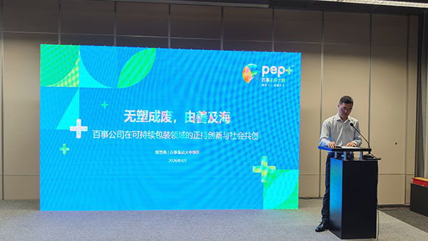 百事集团公共政策及政府事务总监殷浩亮分享了百事公司在可持续包装领域的正持创新与社会共创经验,从降低原生塑料使用、促进循环经济、减少碳排放,到“百事同乐 一笑一善”的公益活动,构建了百事无废公众教育联动效应。