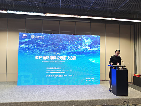 浙江蓝景科技有限公司首席可持续发展官杜馨媚分享了浙江蓝景获得联合国地球卫士奖项目的经验,用商业的力量,成就清洁的海洋。