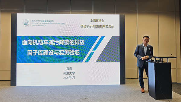 同济大学袁泉以机动车减污降碳排放因子库建设与实测验证为主题,基于MOVES模型本地化修正与PEMS车载实测,系统测定不同车型、车龄、载重、速度下的排放特征,明确国六标准较国四NOx排放大幅下降、低速与重载是排放关键控制点。研究成果为交通碳核算、减排方案评估、新能源替代推广提供精准数据支撑。